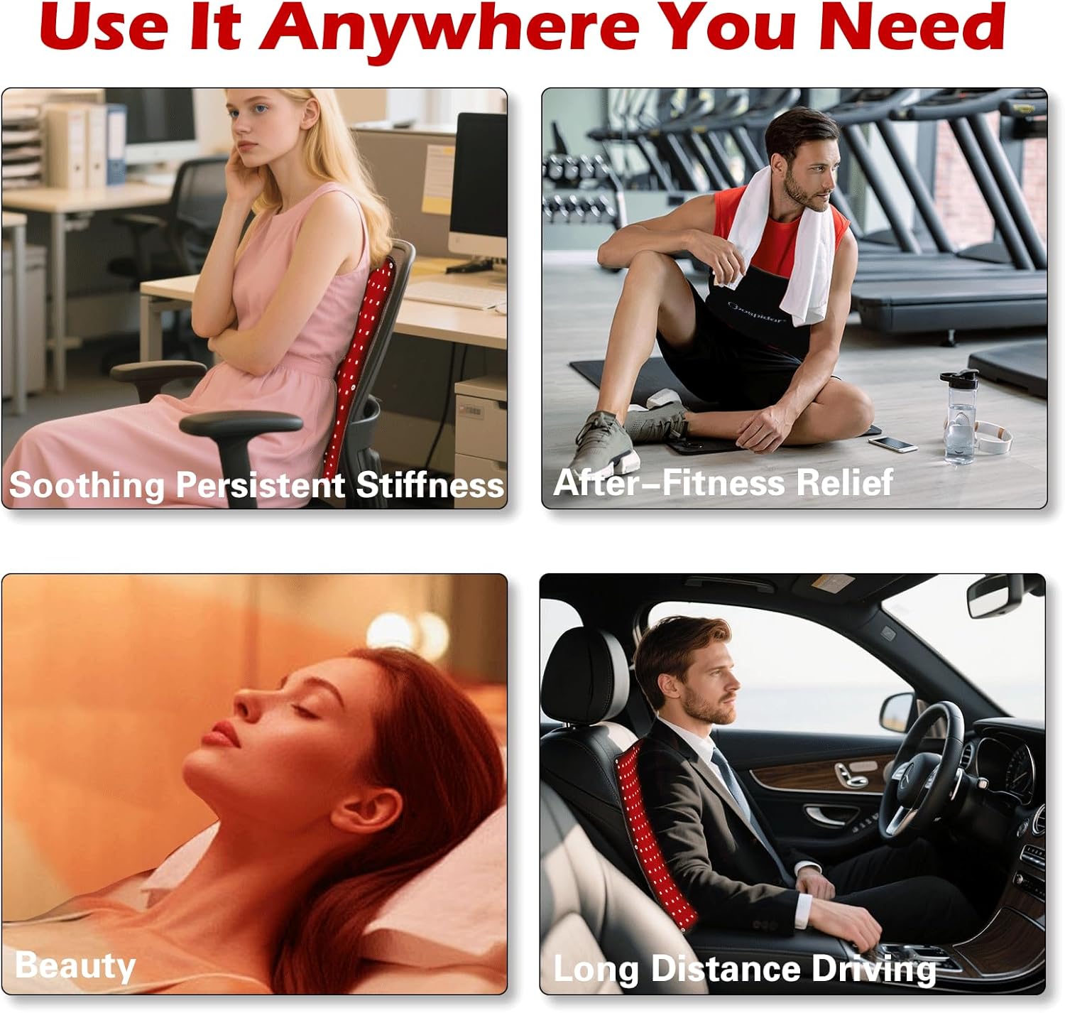 - Unique square design 18″x18″: More suitable as a seat cushion or back cushion, use the two elastic extension straps to fix this red light therapy pad to the chair where you often sit for a long time, such as in the office. Just press the switch to start red light therapy easily and conveniently every time, eliminating the cumbersome wearing steps. And we provide a car charger plug to help you feel comfortable during long-distance driving.
