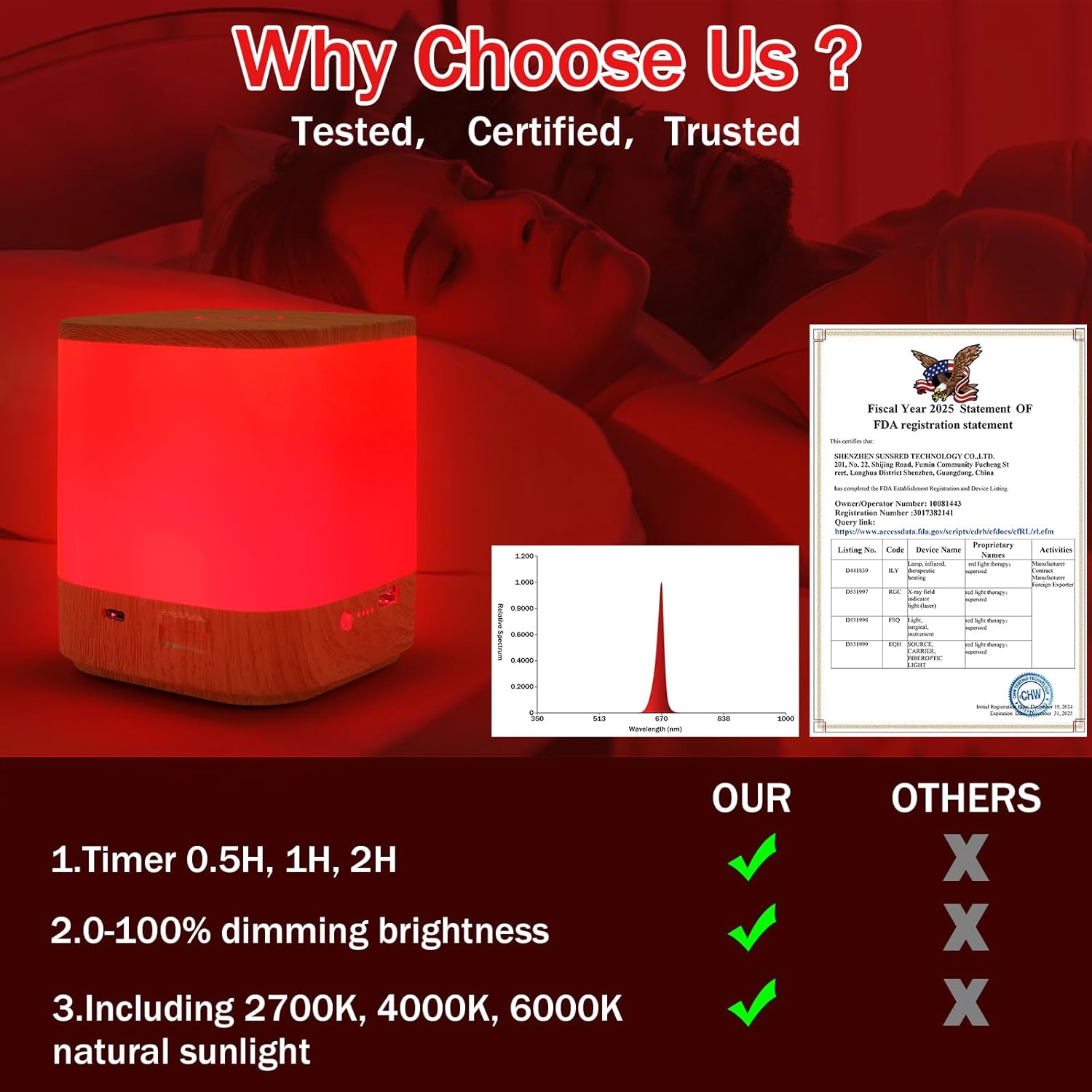 • Natural Sleep Aid Lamp: This red light sleep aid device uses clinical grade LED beads to ensure pure red light with a wavelength of 670nm. The light intensity ≤ 40 lux at 4 feet, making it suitable for bedroom who are sensitive to light and have irregular sleep patterns to improve their sleep. Create a relaxing atmosphere before bedtime, during meditation, and yoga.