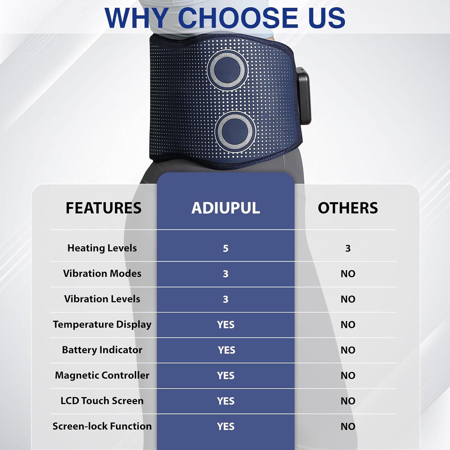 - 【Touch Screen Control】- This back massager belt for back pain relief is extremely user-friendly. It features an LED touch screen controller that allows you to easily select the heating or vibration function with just a single touch. The massager is equipped with an auto-off feature that activates after 20 minutes of use. You have the flexibility to use the massage and heating functions independently or together for a customized experience.