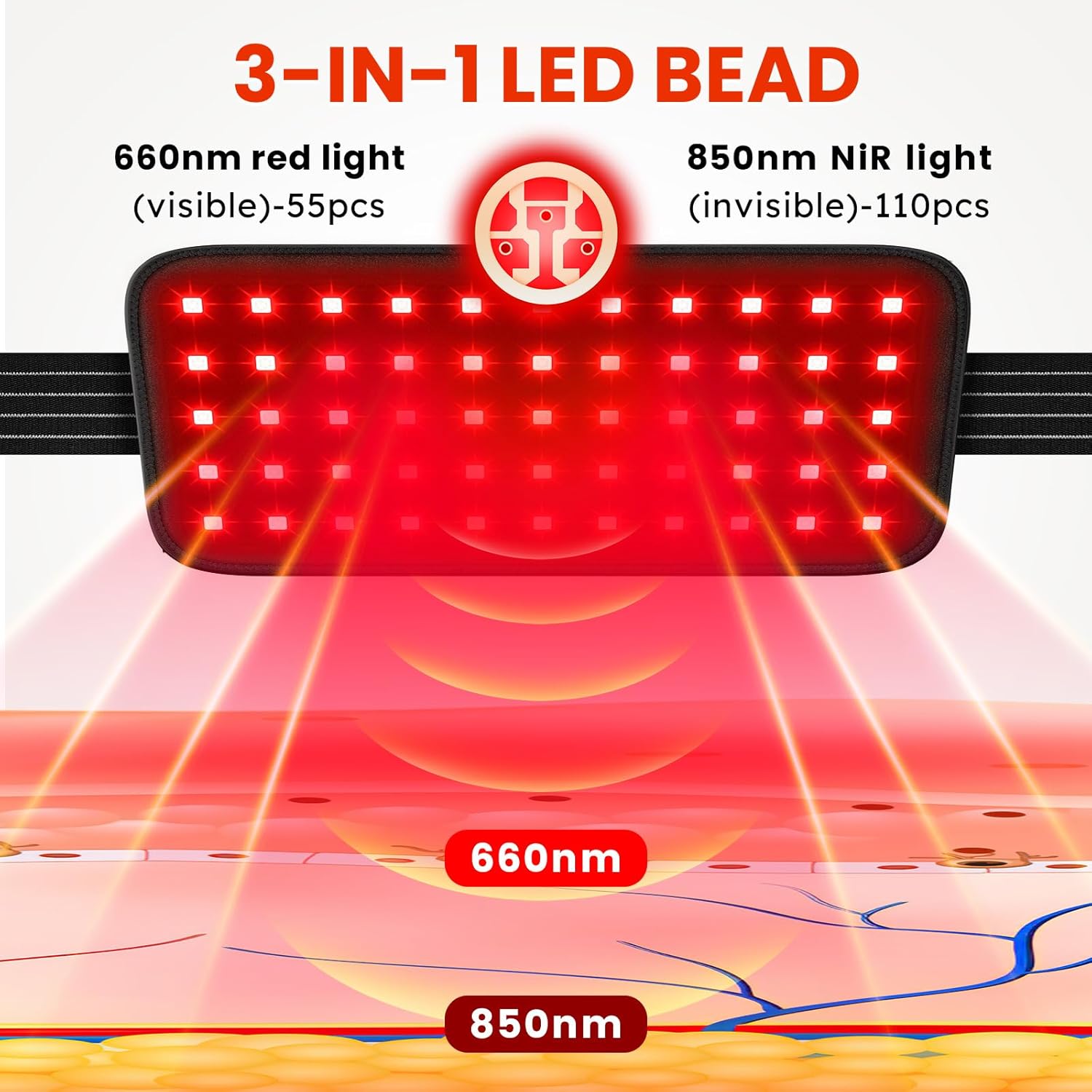 - 5 Modes: This red light therapy wrap has 5 intensity modes, 660nm deep red light and 850nm invisible near-infrared light. The 5th gear is the pulse mode, pulsed red light enhances neural activity suitable for work breaks to Improve concentration.