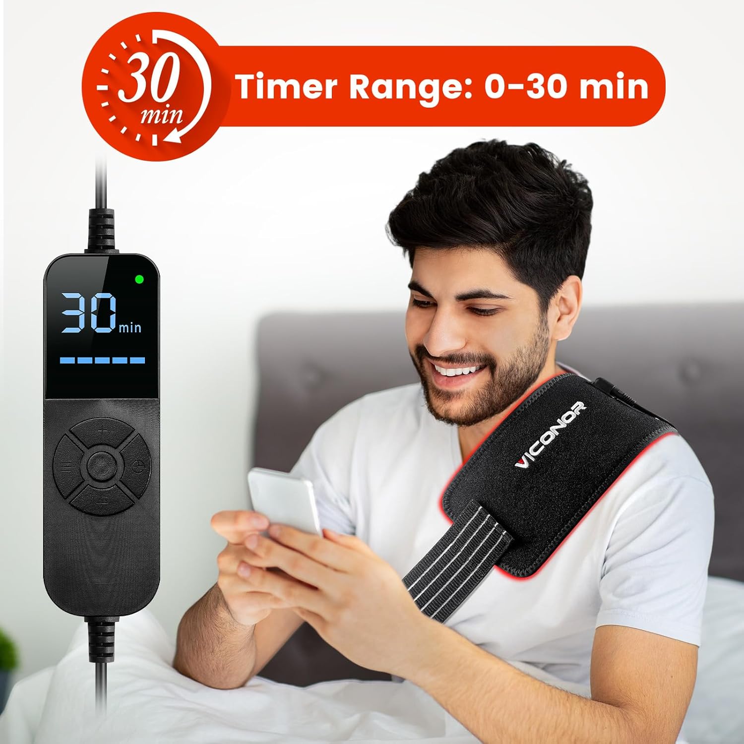 - 30-Minute Timed Shutoff: Viconor infrared light therapy offers a controller with adjustable modes and times.30-minute auto shutoff is genius for busy multitaskers!It is recommended to use this red light belt 3-5 times a week, with each It is recommended to use this red light belt 3-5 times a week for 30 minutes each time.