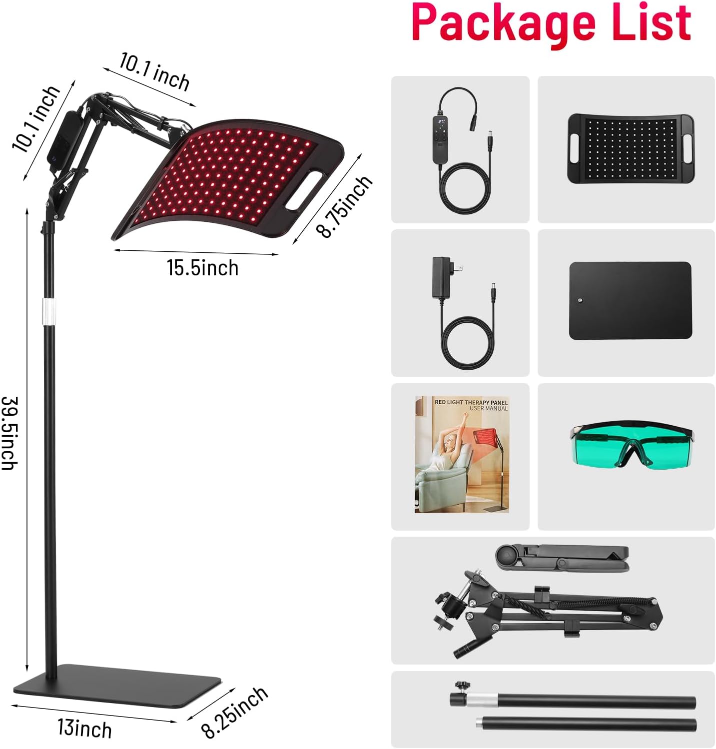 - FULL BODY LIGHT THERAPY PANEL LAMP WITH ADJUSTABLE STAND TARGETING-red light therapy device with 360° Flexible Design, Height-adjustable stand (20inch-50inch) with rotating head to treat back, knees, shoulders, or legs effortlessly. Ideal for post-workout or elderly users, big screen device and show it easy. Remote Control with 5 level heat Adjust settings to fulfill your requirement. Home & Clinic Use easy for Quiet operation with remote control for bedsides, chairs, or physiotherapy sessions.