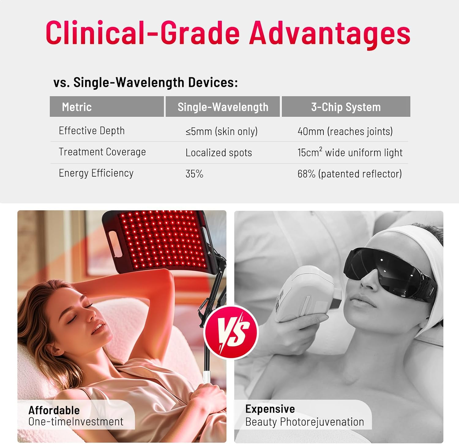 - RED LIGHT THERAPY PANEL WITH PROFESSIONAL RED&NEAR INFRARED LEDs- Dual Wavelength Technology Combines 120pcs LEDs with 660nm red light (skin surface) plus 850nm near-infrared (deep tissue) to support muscle recovery, joint comfort, and circulation for Full face and body Targeting.