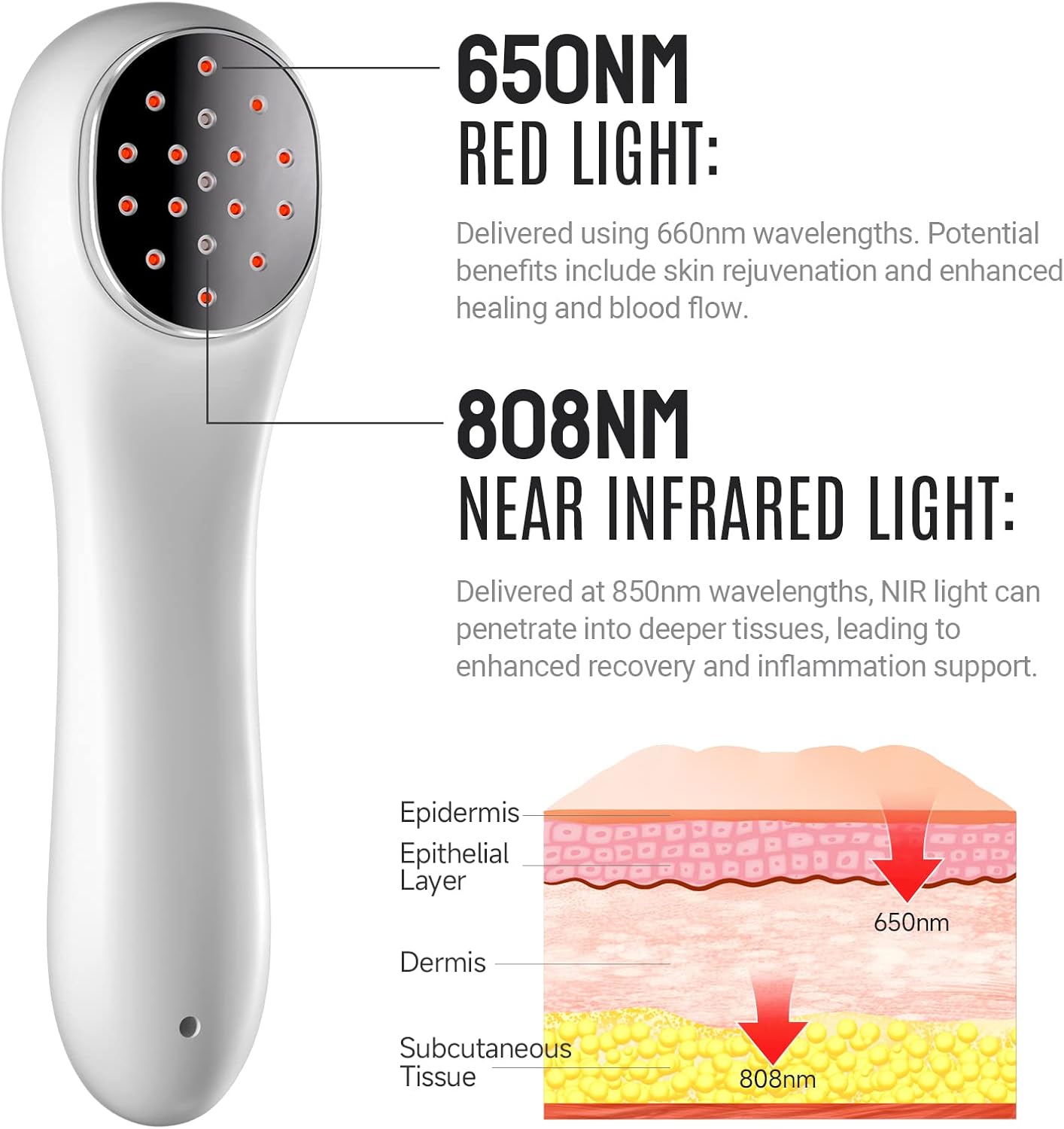 Red Light Therapy, Holsn Infrared Red Light Therapy Device for Body Targets Joint and Muscles Directly for Pain Relief, 650 nm & 808nm Red Light Therapy Wand