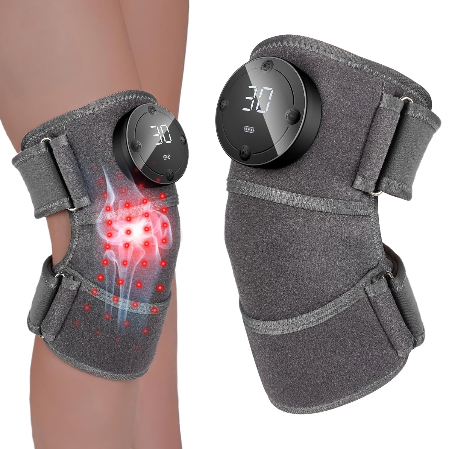 Red Light Therapy Knee Massager – 660nm & 850nm Infrared Heated Massager with Vibration, 48 LEDs, Cordless Charging, for Pain Relief in Knee, Shoulder, Elbow