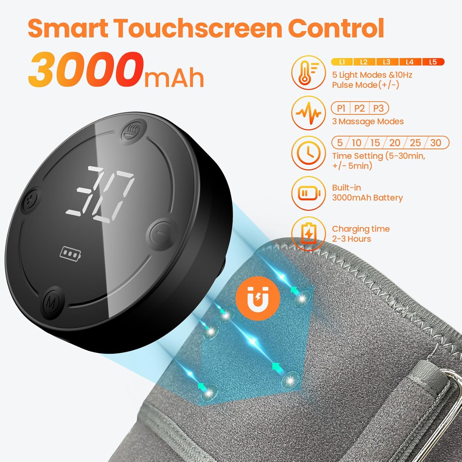• Dual Wavelength LED Therapy: Combines 660nm red light and 850nm near-infrared light across 48 LEDs to penetrate deep into the tissue, helping boost circulation and relieve tension around the knees and joints.