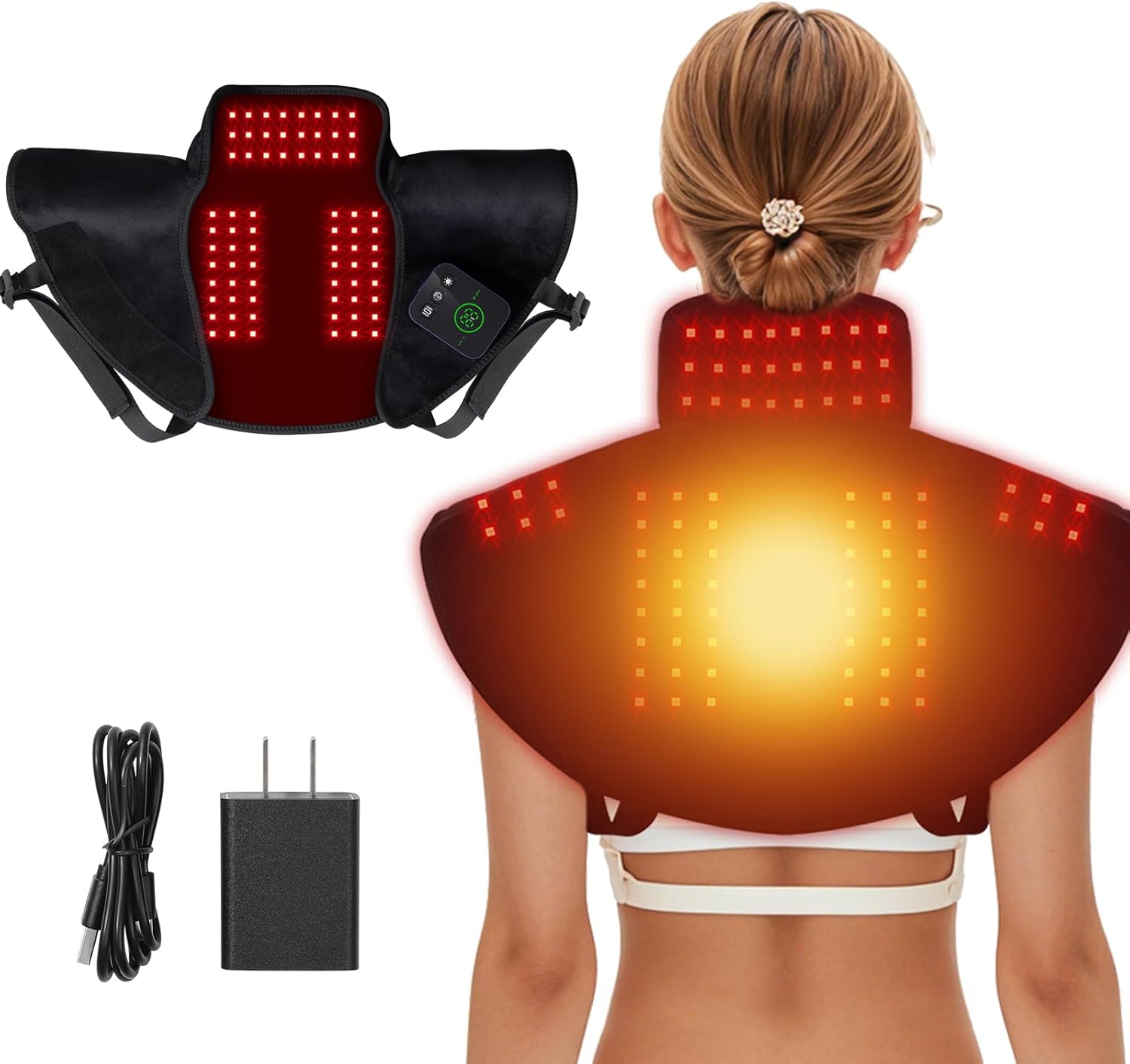 - Ergonomic Fit for Neck and Shoulders: Designed to wrap around the neck and shoulders comfortably, the U-shaped red light therapy pad follows the natural curve of your body. Adjustable shoulder straps ensure a secure fit for neck sizes up to 25.98 inches, allowing you to enjoy therapy without the device slipping out of place