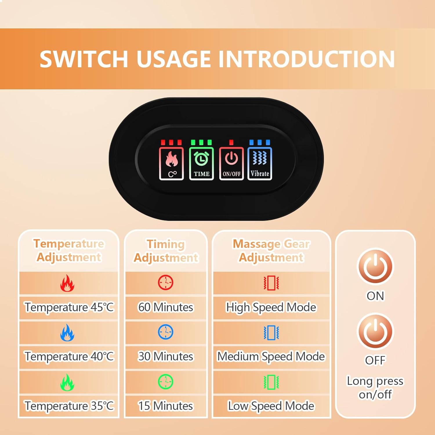 - Deep Relaxation with Heat & Massage: Features 4 massage motors for 3 adjustable intensity levels to target sore muscles with precision. Paired with 3 heat settings (35°C/40°C/45°C), it delivers gradual relief, whether you’re recovering from workouts, PMS, or long hours sitting.