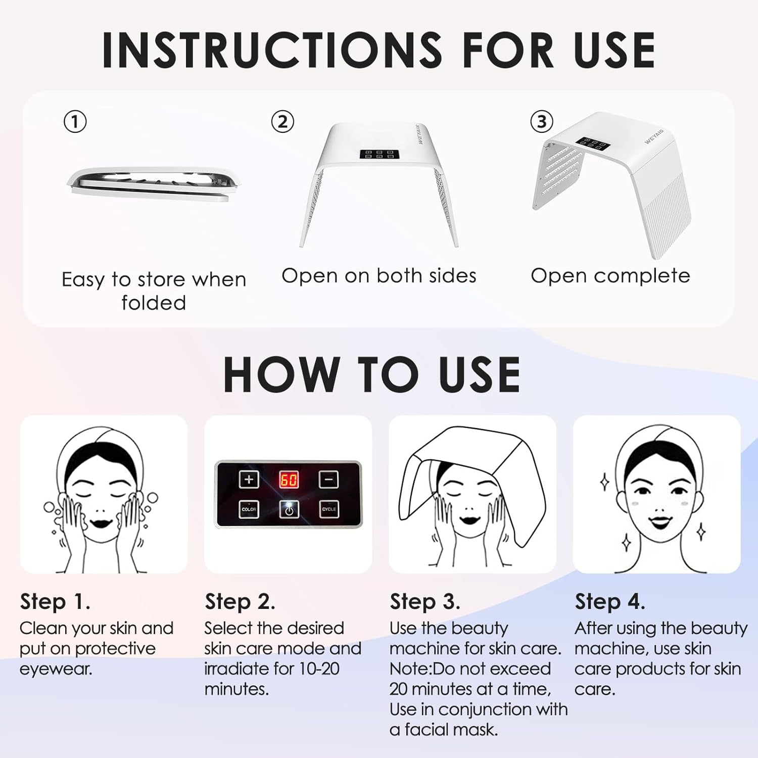 - Easy to Use – Experience convenience with our easy-to-use red light therapy device. After cleansing your face, apply your favorite skincare products, choose your desired light color and then relax and let the mask work its magic, allowing you to lie back and enjoy a spa-like rejuvenating experience.