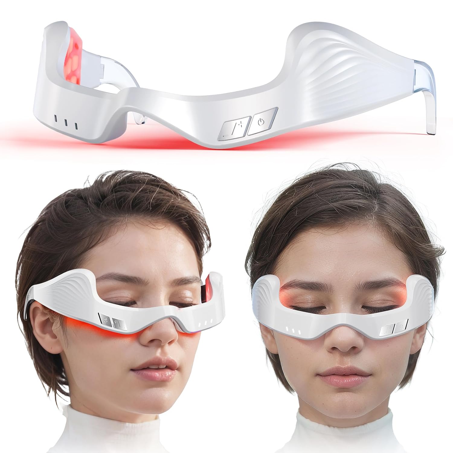 - Precautions for use: Precautions for Use: Before using the device, ensure that the skin under your eyes is properly moisturized. Apply a moisturizer, eye cream, or any hydrating product to maintain adequate moisture. If you feel that the eye massage is too small, please place the device tightly against your face. We provide you with glasses strap, and you can choose whether to use them and adjust the elasticity according to your personal comfort.