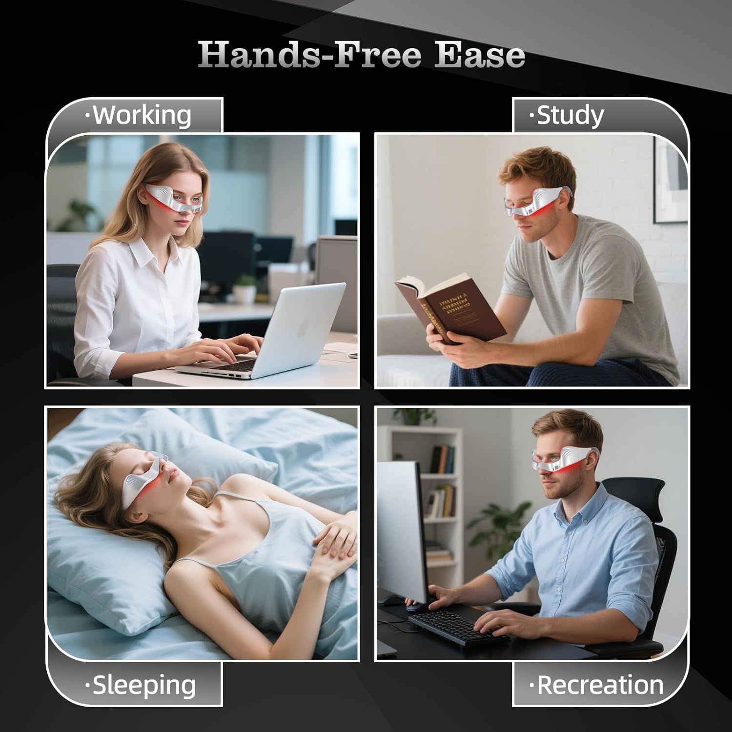- Red Light Therapy for Face: Ideal for under-eye and facial areas, Red Light Therapy stimulates collagen production, evens out skin tone, reduces fine lines and wrinkles, and relieves eye fatigue—promoting a refreshed, youthful appearance.